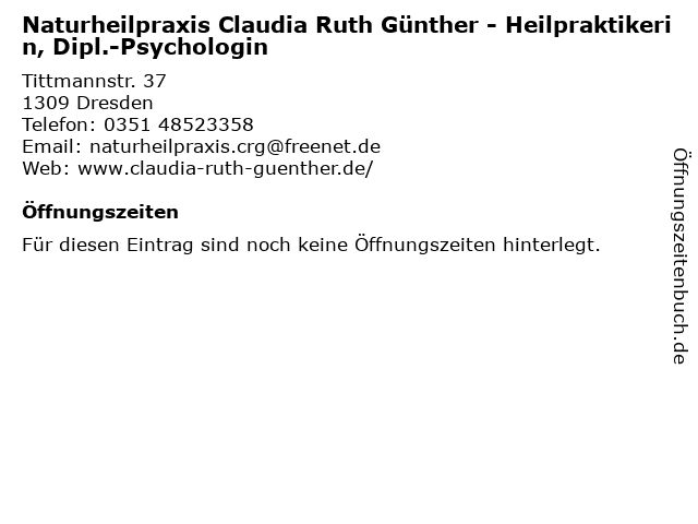| Naturheilpraxis Claudia Ruth Günther - Heilpraktikerin, Dipl.-Psychologin anrufen | |