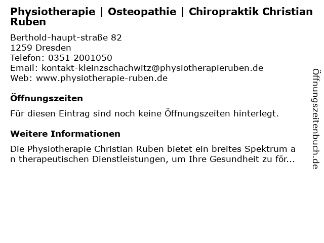 | Physiotherapie | Osteopathie | Chiropraktik Christian Ruben anrufen | |