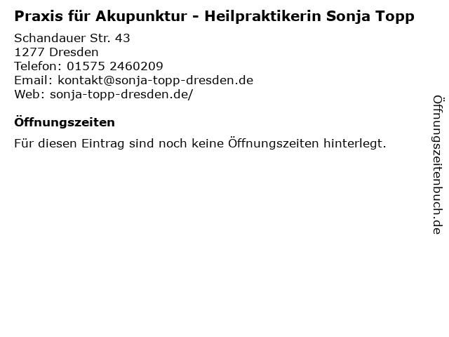 | Praxis für Akupunktur - Heilpraktikerin Sonja Topp anrufen | |
