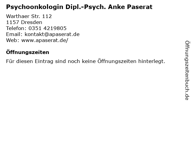 | Psychoonkologin Dipl.-Psych. Anke Paserat anrufen | |