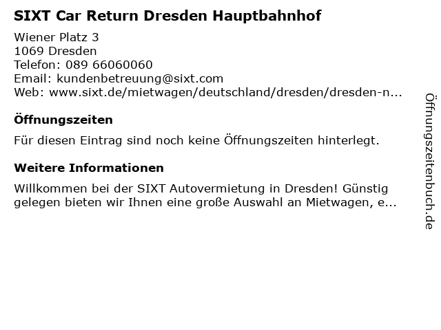 | SIXT Car Return Dresden Hauptbahnhof anrufen | |
