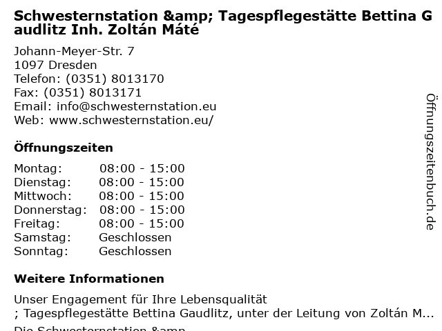 Branchen & Suchbegriffe zu Schwesternstation & Tagespflegestätte Bettina Gaudlitz Inh. Zoltán Máté:bettina, gaudlitz, haushaltshilfe, hauswirtschaftliche hilfe, máté, schwesternstation, tagespflegestätte, zoltán |