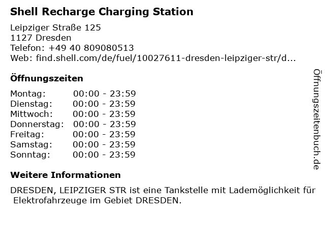Shell Recharge Charging Station in Dresden | Telefonnummer, Öffnungszeiten und Adresse