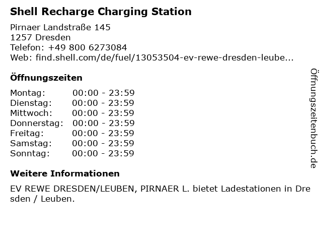 Öffnungszeiten Shell Recharge Charging Station in Dresden anzeigen