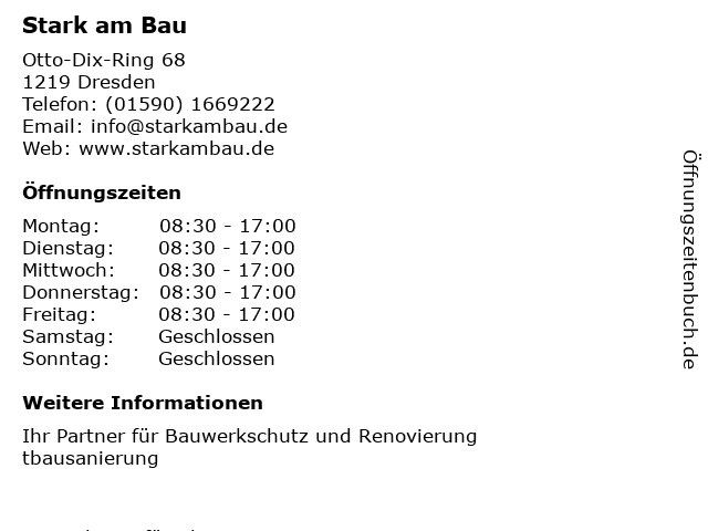 | Öffnungszeiten Stark am Bau in Dresden anzeigen | |