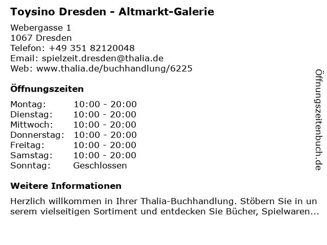 Branchen & Suchbegriffe zu Toysino Dresden - Altmarkt-Galerie:altmarkt, bestseller, bookshop, buchhandlung dresden, buchladen, bücher, ebooks, galerie, spielwaren, thalia buchhandlung, thalia dresden, toysino |
