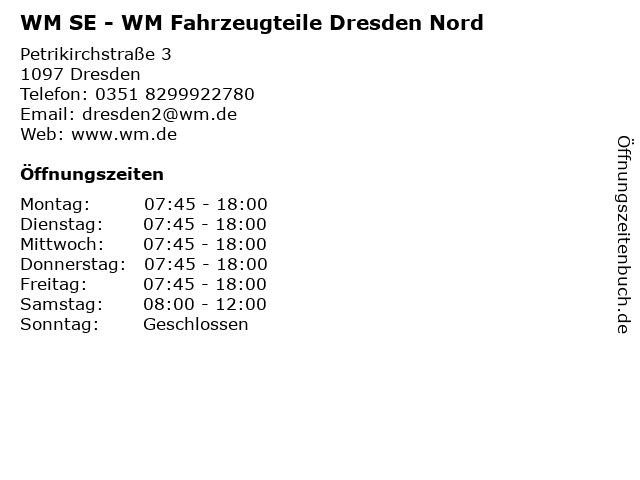 Branchen & Suchbegriffe zu WM SE - WM Fahrzeugteile Dresden Nord:fahrzeugteile, nord, se, wm |