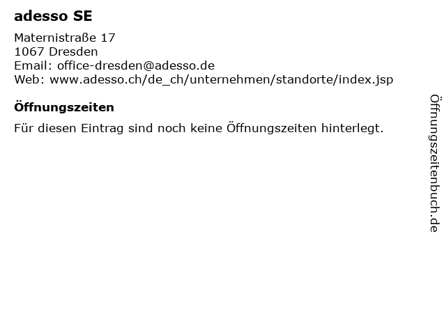 | Öffnungszeiten adesso SE in Dresden anzeigen | |