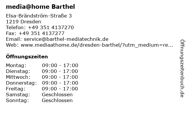 | Öffnungszeiten media@home Barthel in Dresden anzeigen | |