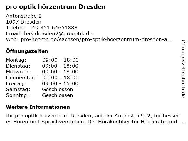 Branchen & Suchbegriffe zu pro optik hörzentrum Dresden:gehörschutz, hörakustiker, hörakustiker dresden, hörberatung, hörgeräte, hörgeräte dresden, hörgerätebatterien, hörhilfe, hörsysteme, hörtest, hörtraining, hörzentrum, kostenloser hörtest, nulltarif hörgeräte, optik, pflegeprodukte für hörsysteme, pirnaische vorstadt, pro, pro optik hörzentrum, tinnitus, tinnitus-beratung |