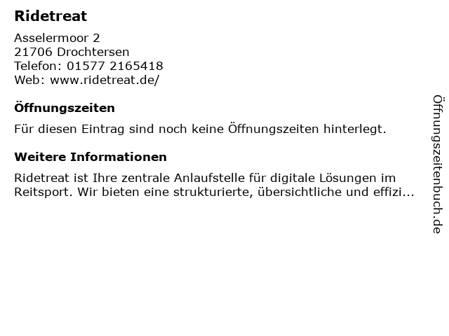 | Öffnungszeiten Ridetreat in Drochtersen anzeigen | |
