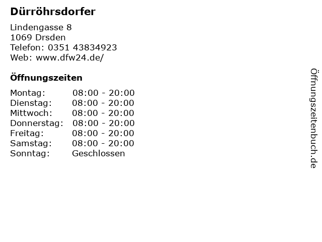 | Öffnungszeiten Dürröhrsdorfer in Drsden anzeigen | |