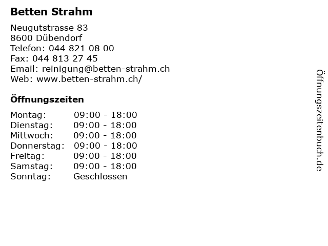 | Öffnungszeiten Betten Strahm in Dübendorf anzeigen | |