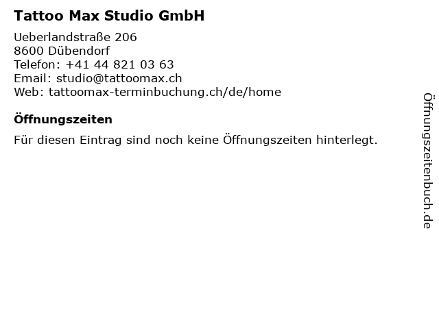 Öffnungszeiten Tattoo Max Studio GmbH in Dübendorf anzeigen | |