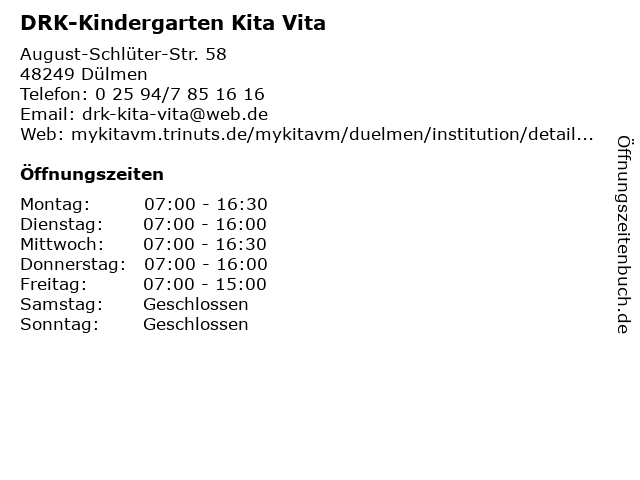 | Öffnungszeiten DRK-Kindergarten Kita Vita in Dülmen anzeigen | |