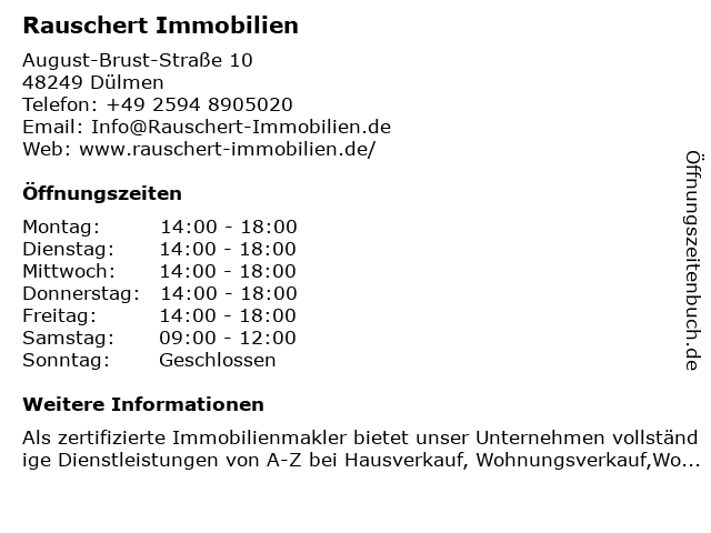 | Öffnungszeiten Rauschert Immobilien in Dülmen anzeigen | |