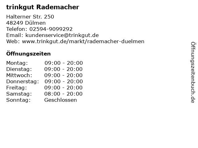 | Öffnungszeiten trinkgut Rademacher in Dülmen anzeigen | |