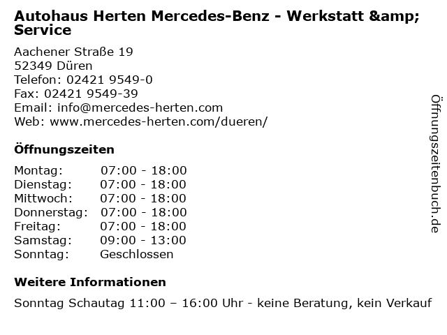 1 Autohaus Herten Mercedes-Benz - Verkauf & Showroom (Entfernung: 0,00 km) Aachener Straße 19, 52349 Düren 3 4 Mercedes-Benz Schain GmbH Kraftfahrzeuge (Entfernung: 12,41 km) An der wasserwiese 3, 52249 Eschweiler 6 original-autoparts.com - Genuine OEM Car Parts for BMW, Mercedes-Benz, VW & Audi (Entfernung: 17,15 km) Hüttenstraße 205, 50170 Kerpen |