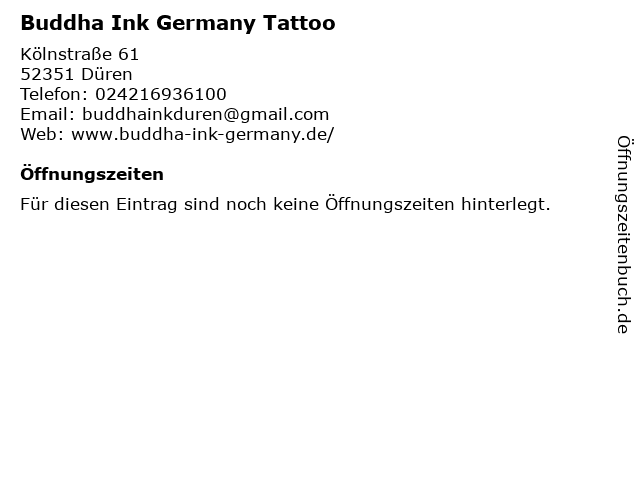 | Öffnungszeiten Buddha Ink Germany Tattoo in Düren anzeigen | |