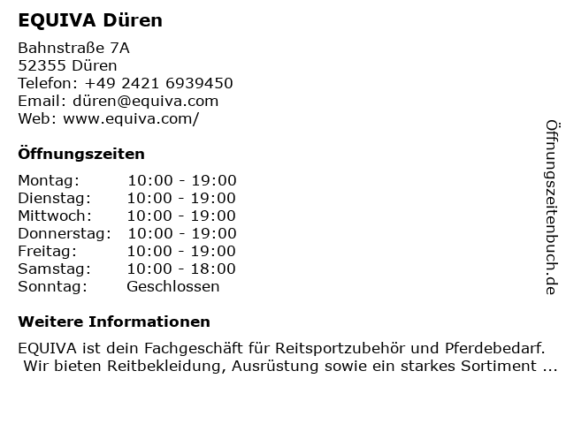 | Öffnungszeiten EQUIVA Düren in Düren anzeigen | |