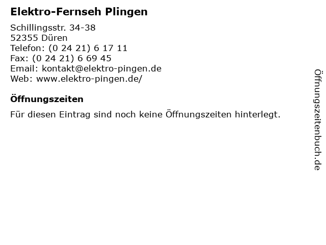 | Öffnungszeiten Elektro-Fernseh Plingen in Düren anzeigen | |