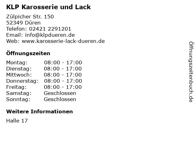 | Öffnungszeiten KLP Karosserie und Lack in Düren anzeigen | |