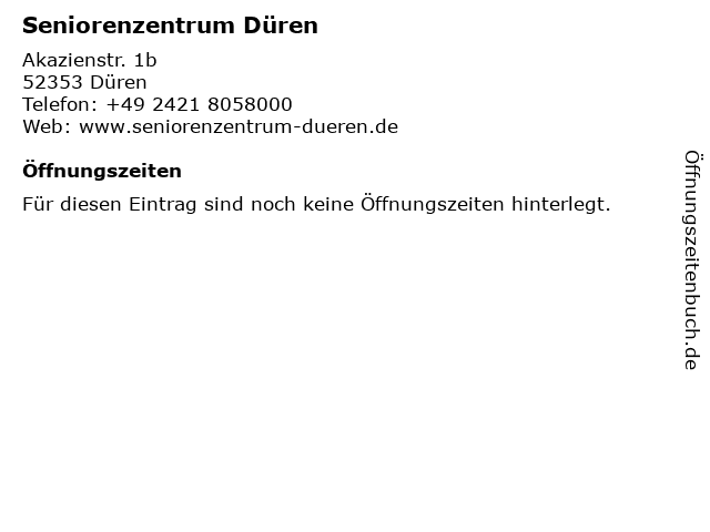 | Öffnungszeiten Seniorenzentrum Düren in Düren anzeigen | |