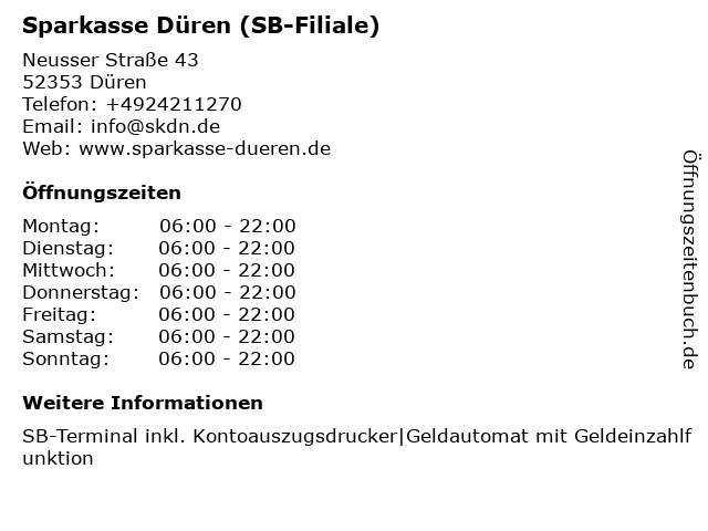 Öffnungszeiten Sparkasse Düren (SB-Filiale)