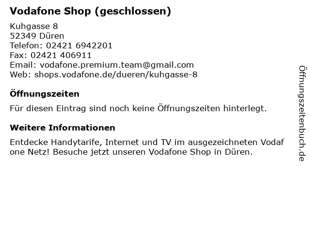 Öffnungszeiten Vodafone Shop (geschlossen) in Düren anzeigen | |