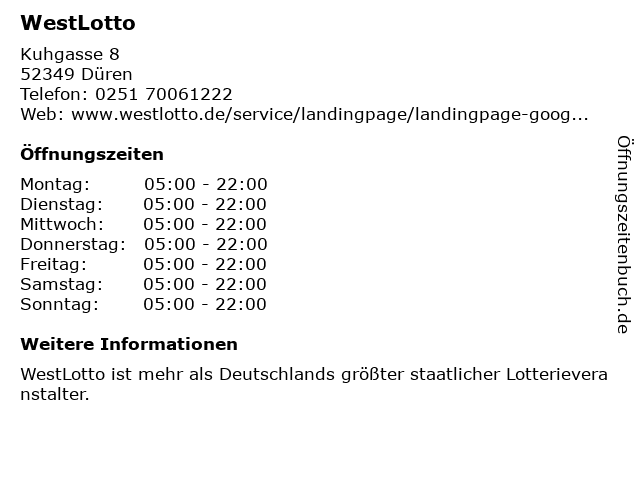 WestLotto in Düren | Telefonnummer, Öffnungszeiten und Adresse