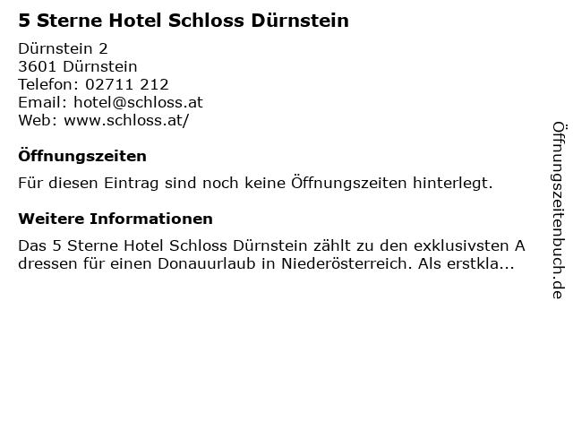 | 5 Sterne Hotel Schloss Dürnstein anrufen | |