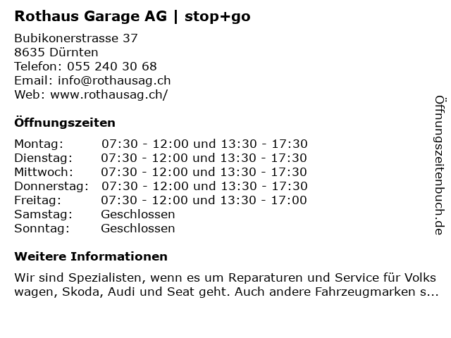 Öffnungszeiten Rothaus Garage AG | stop+go