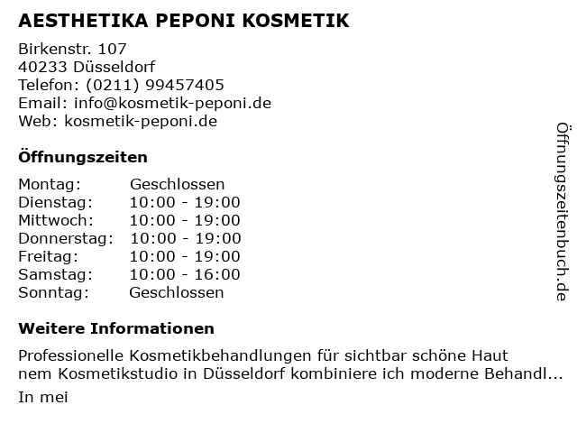 2 Nicola Schröder npunkt – ästhetische Kosmetik (Entfernung: 0,51 km) Lindenstraße 217, 40235 Düsseldorf 6 |