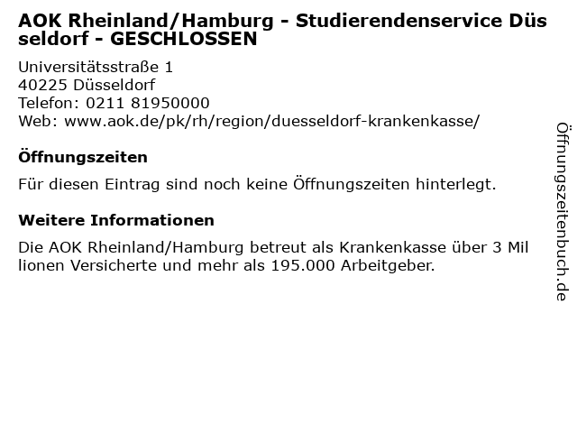 Branchen & Suchbegriffe zu AOK Rheinland/Hamburg - Studierendenservice Düsseldorf - GESCHLOSSEN:aok, geschlossen, rheinland/hamburg, studierendenservice |