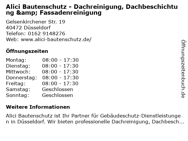 3 Hüsson Farbe Gestaltung Bautenschutz GmbH Maler- und Lackiererfachbetrieb (Entfernung: 1,51 km) Auf der Reide 30, 40468 Düsseldorf 5 Guido Stefan Dietrich Hausmeisterservice und Holz- Bautenschutz (Entfernung: 4,95 km) Annastr. 22, 40880 Ratingen 6 Housewash Company Fassadenreinigung Düsseldorf Spezialisten für Fassadenreinigung (Entfernung: 5,45 km) Erkrather Straße 269, 40231 Düsseldorf |