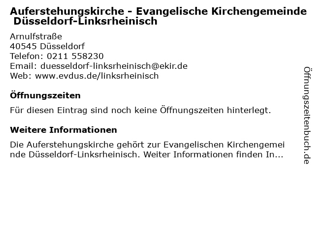 | Auferstehungskirche - Evangelische Kirchengemeinde Düsseldorf-Linksrheinisch anrufen | |