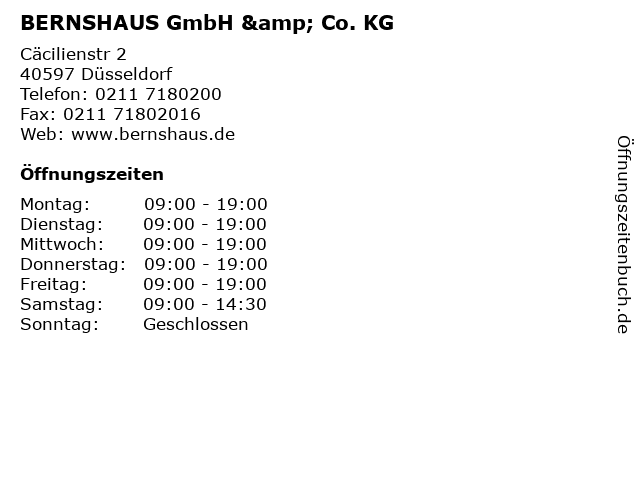 | Öffnungszeiten BERNSHAUS GmbH & Co. KG in Düsseldorf anzeigen | |