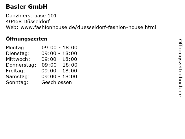 | Öffnungszeiten Basler GmbH in Düsseldorf anzeigen | |