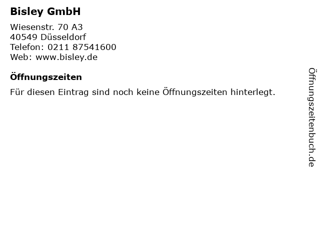 | Öffnungszeiten Bisley GmbH in Düsseldorf anzeigen | |