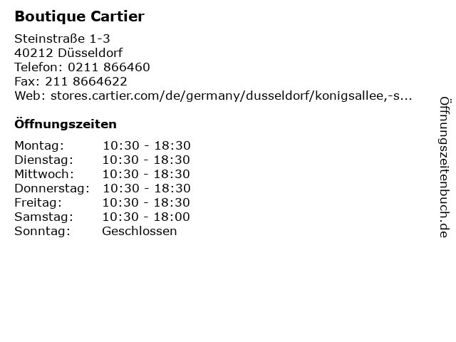 | Öffnungszeiten Boutique Cartier in Düsseldorf anzeigen | |