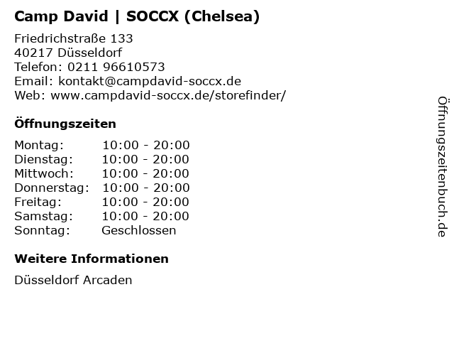 Camp David | SOCCX (Chelsea) in Düsseldorf: Telefonnummer, Öffnungszeiten und Adresse