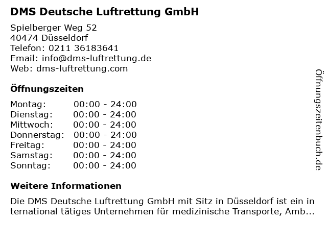1 DRS Deutsche Luftrettung Service Düsseldorf (Entfernung: 6,72 km) Malmedyer Straße 3b, 40549 Düsseldorf 6 |