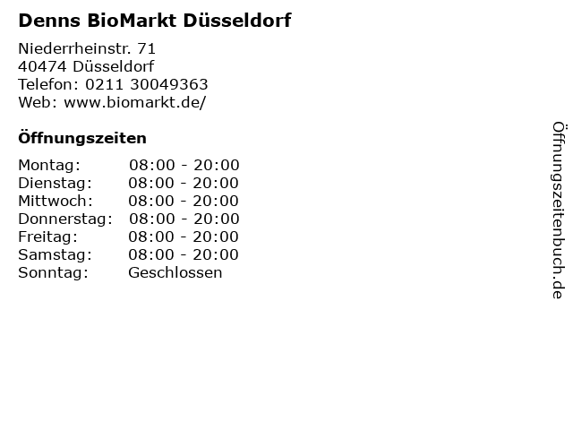 | Öffnungszeiten Denns BioMarkt Düsseldorf in Düsseldorf anzeigen | |