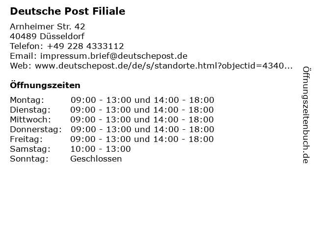 Öffnungszeiten Deutsche Post Filiale in Düsseldorf anzeigen | |