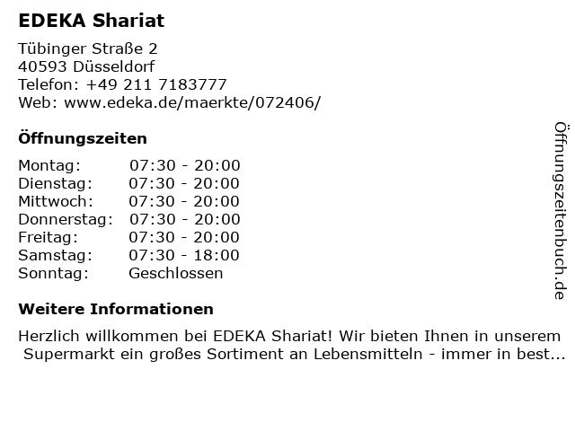 | Öffnungszeiten EDEKA Shariat in Düsseldorf anzeigen | |