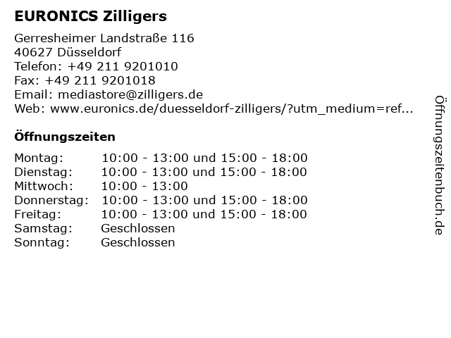 | Öffnungszeiten EURONICS Zilligers in Düsseldorf anzeigen | |
