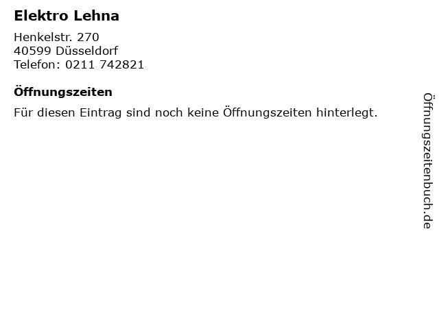 | Öffnungszeiten Elektro Lehna in Düsseldorf anzeigen | |