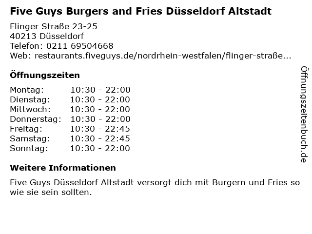 Branchen & Suchbegriffe zu Five Guys Burgers and Fries Düsseldorf Altstadt:altstadt, amerikanisches restaurant, and, burgers, fast food und take away, fast-food-restaurant, five, fries, guys, hot-dog-restaurant, restaurants |