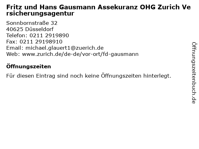 | Fritz und Hans Gausmann Assekuranz OHG Zurich Versicherungsagentur anrufen | |