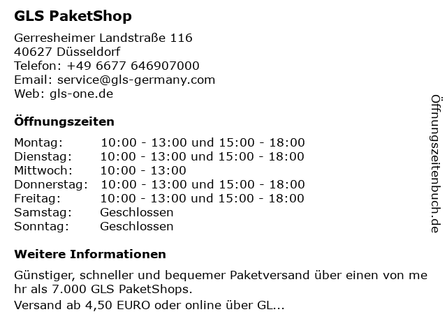 | Adresse GLS PaketShop in Düsseldorf anzeigen |